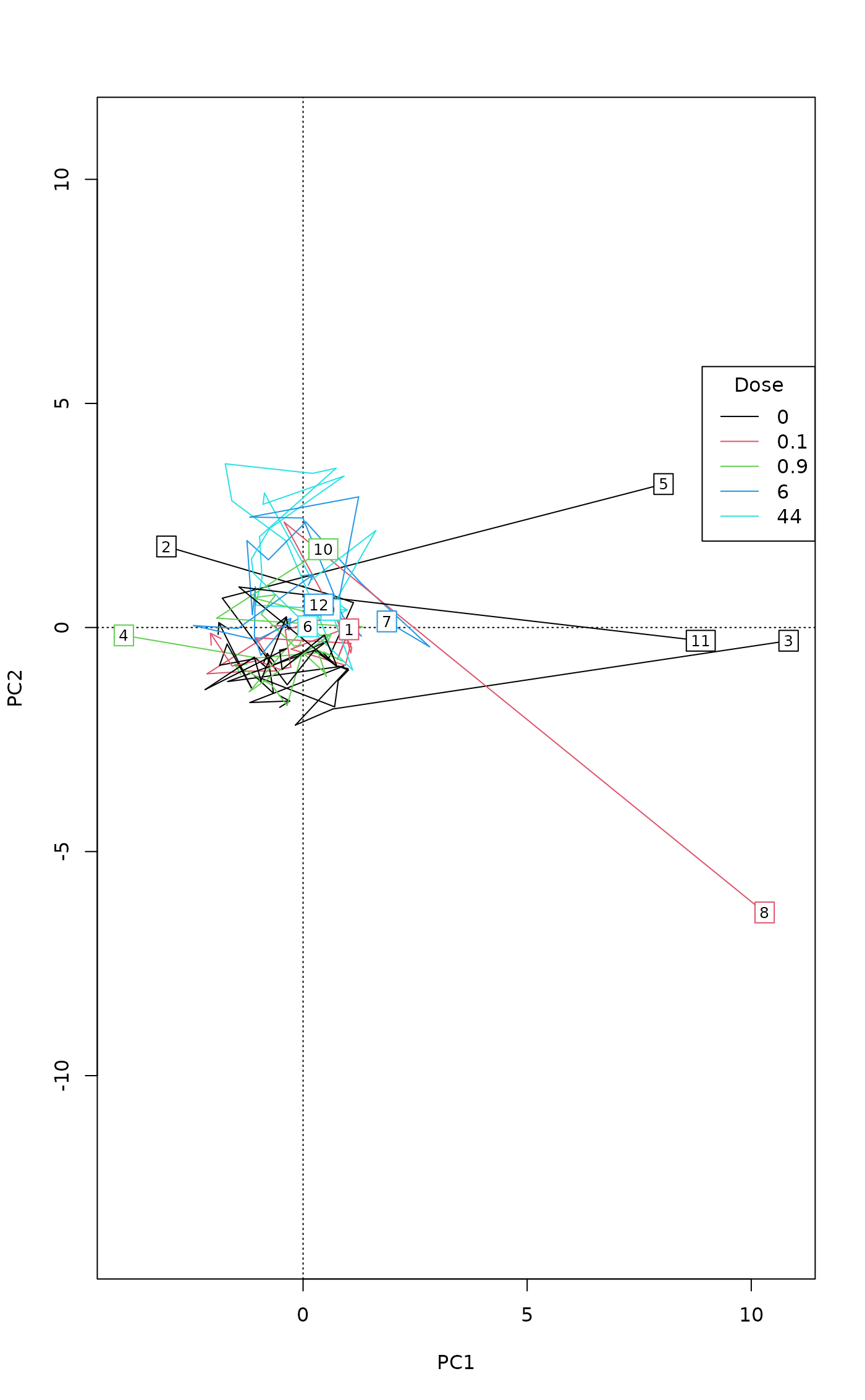 #> pyrifs> dose <- factor(rep(c(0.1, 0, 0, 0.9, 0, 44, 6, 0.1, 44, 0.9, 0, 6), 11))