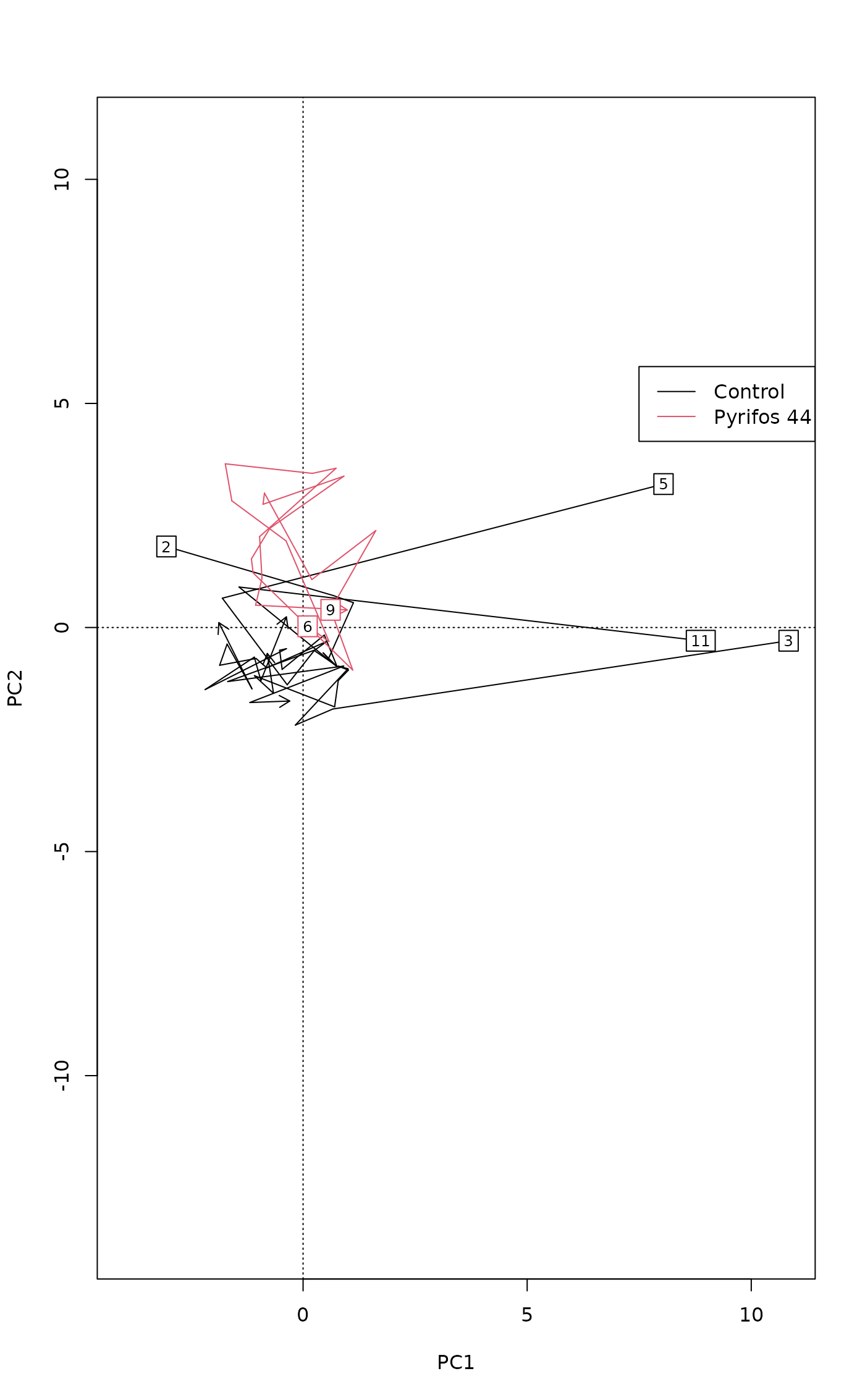 legend("topright", c("Control", "Pyrifos 44"), lty = 1, col = c(1,2))