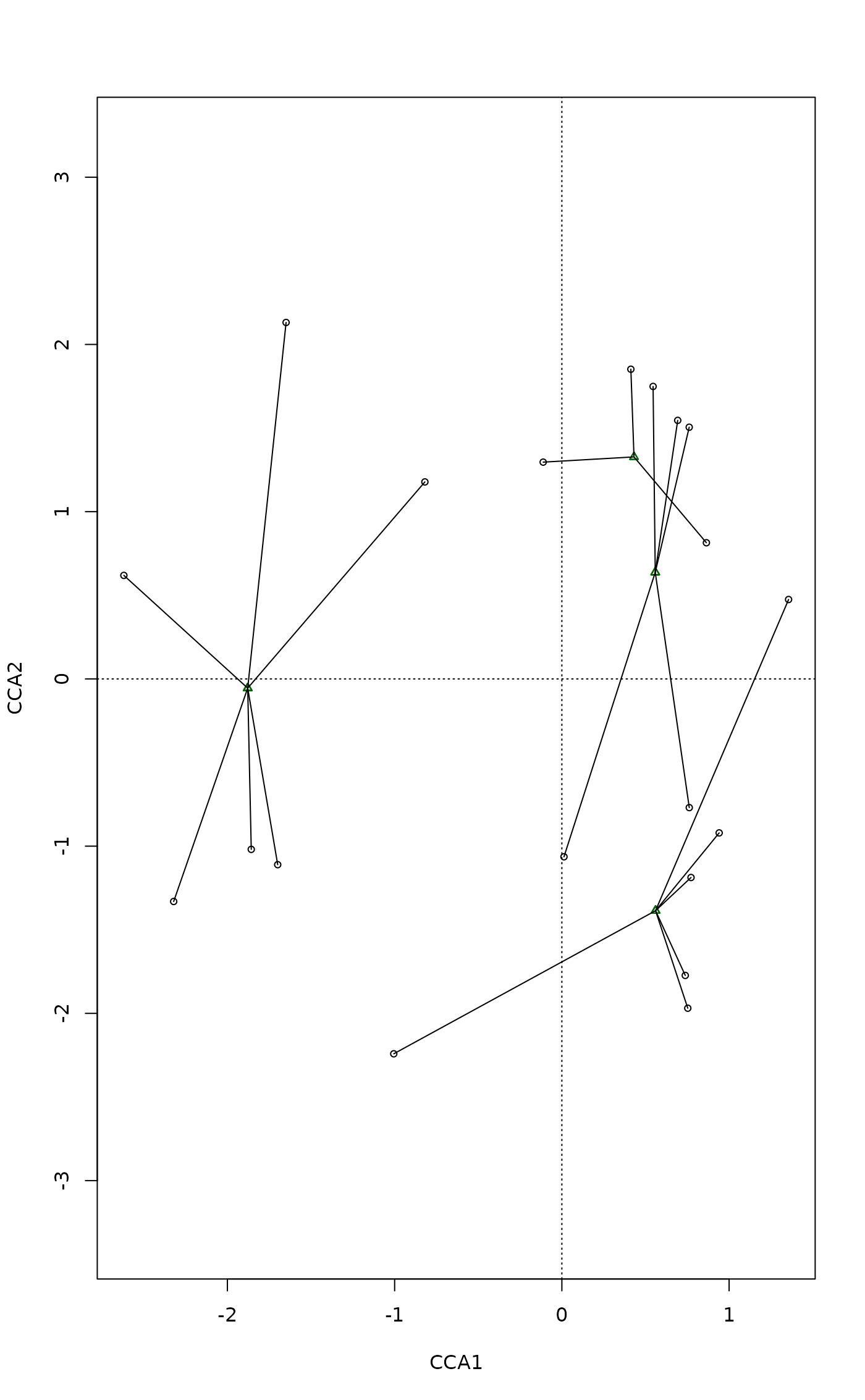 diagrams can be produced by vegan plot.cca,