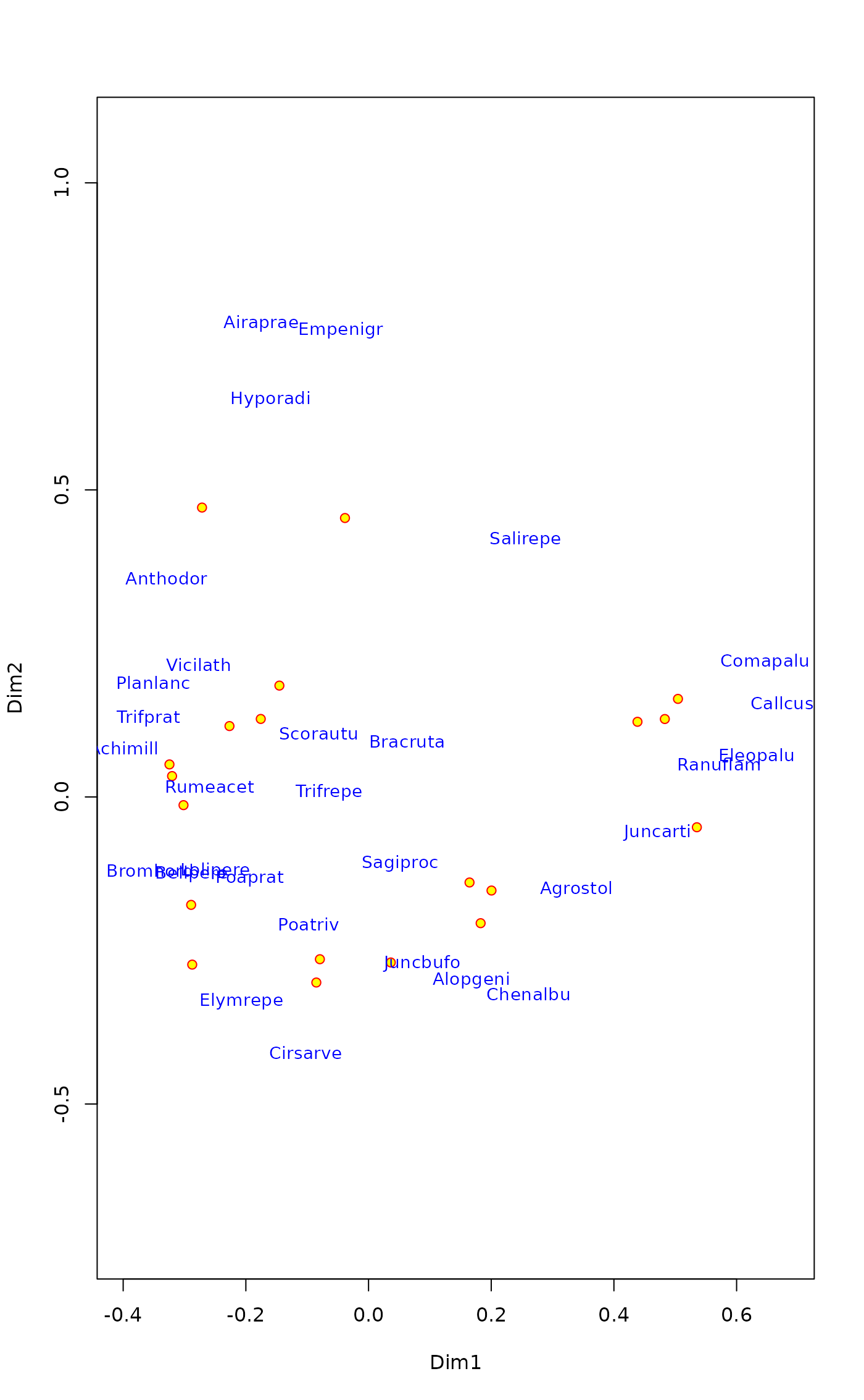 ordiplot methods text and points. Function