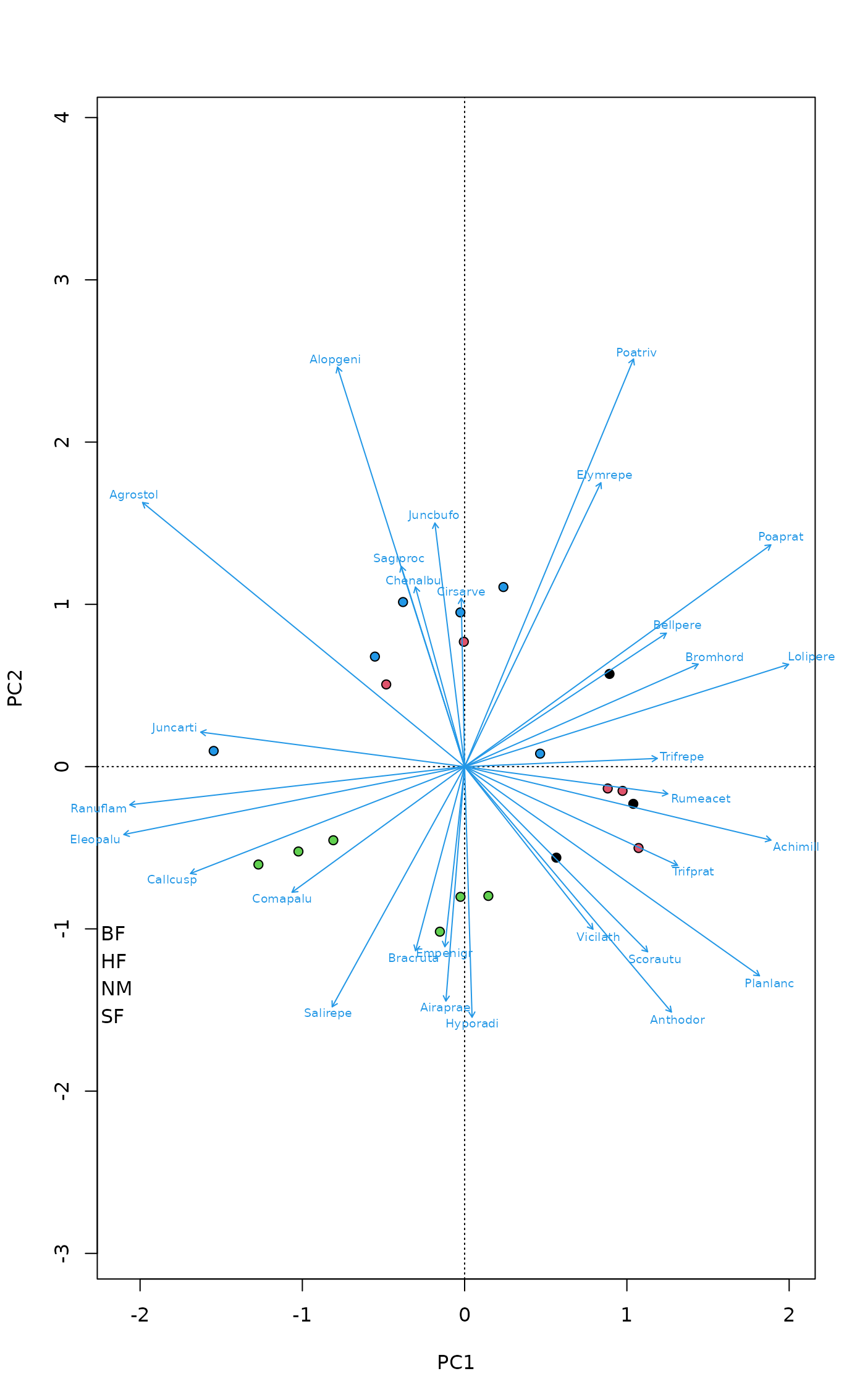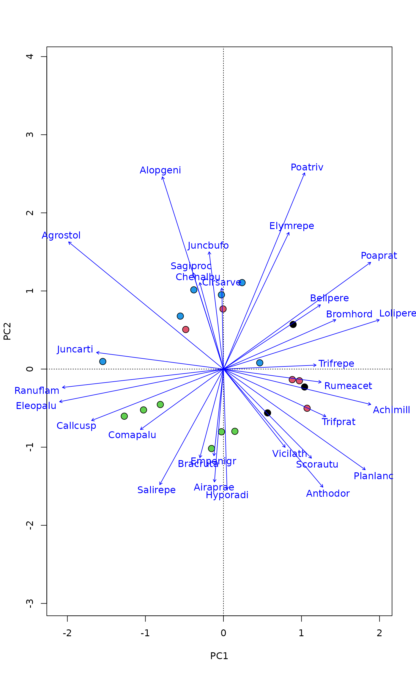 pl <- plot(pca, type="n", scaling="sites", correlation=TRUE)