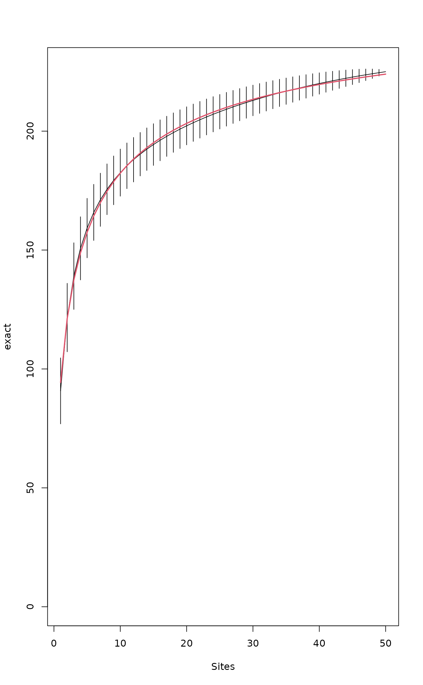 specaccum(comm, method = "exact", permutations = 100,