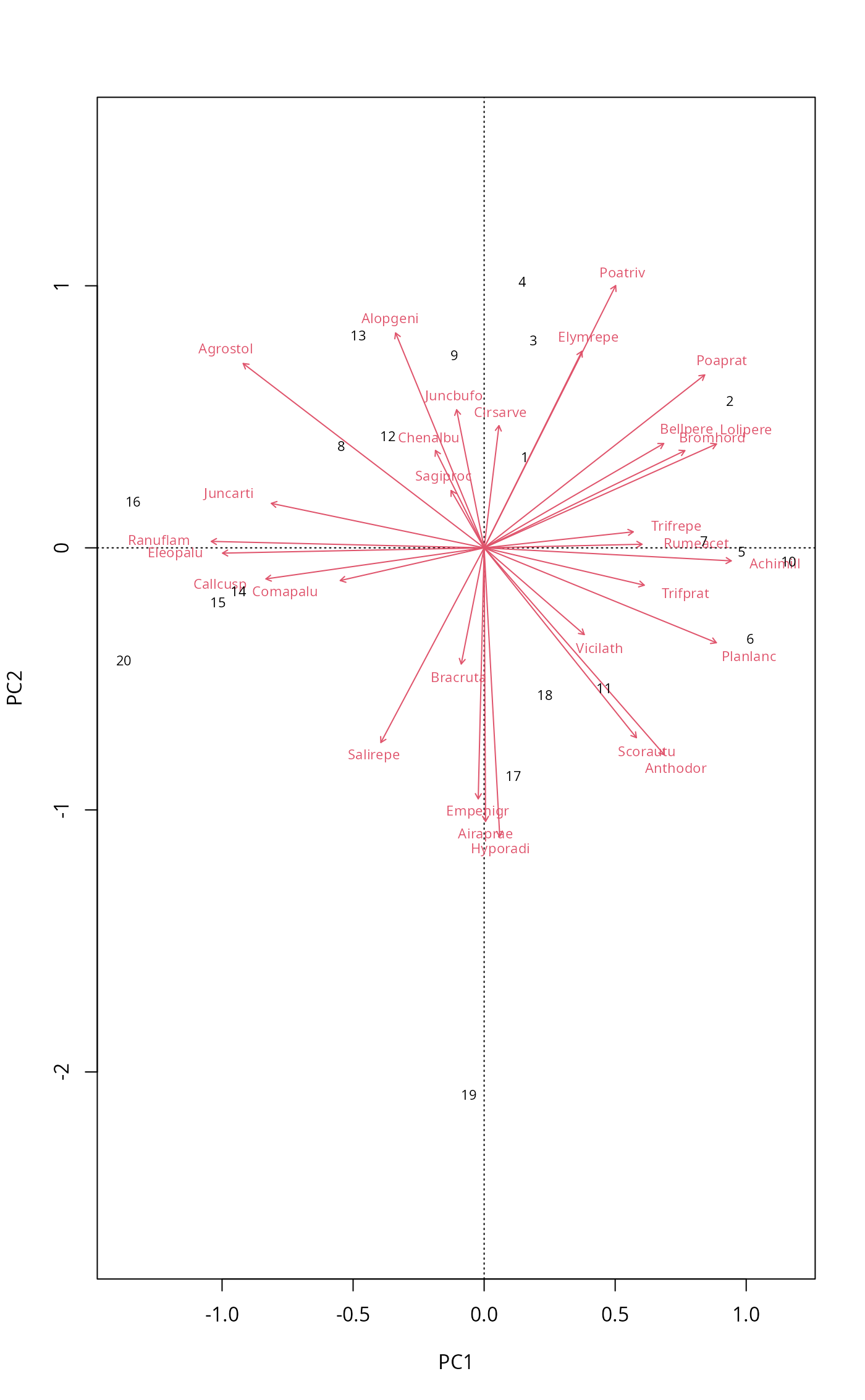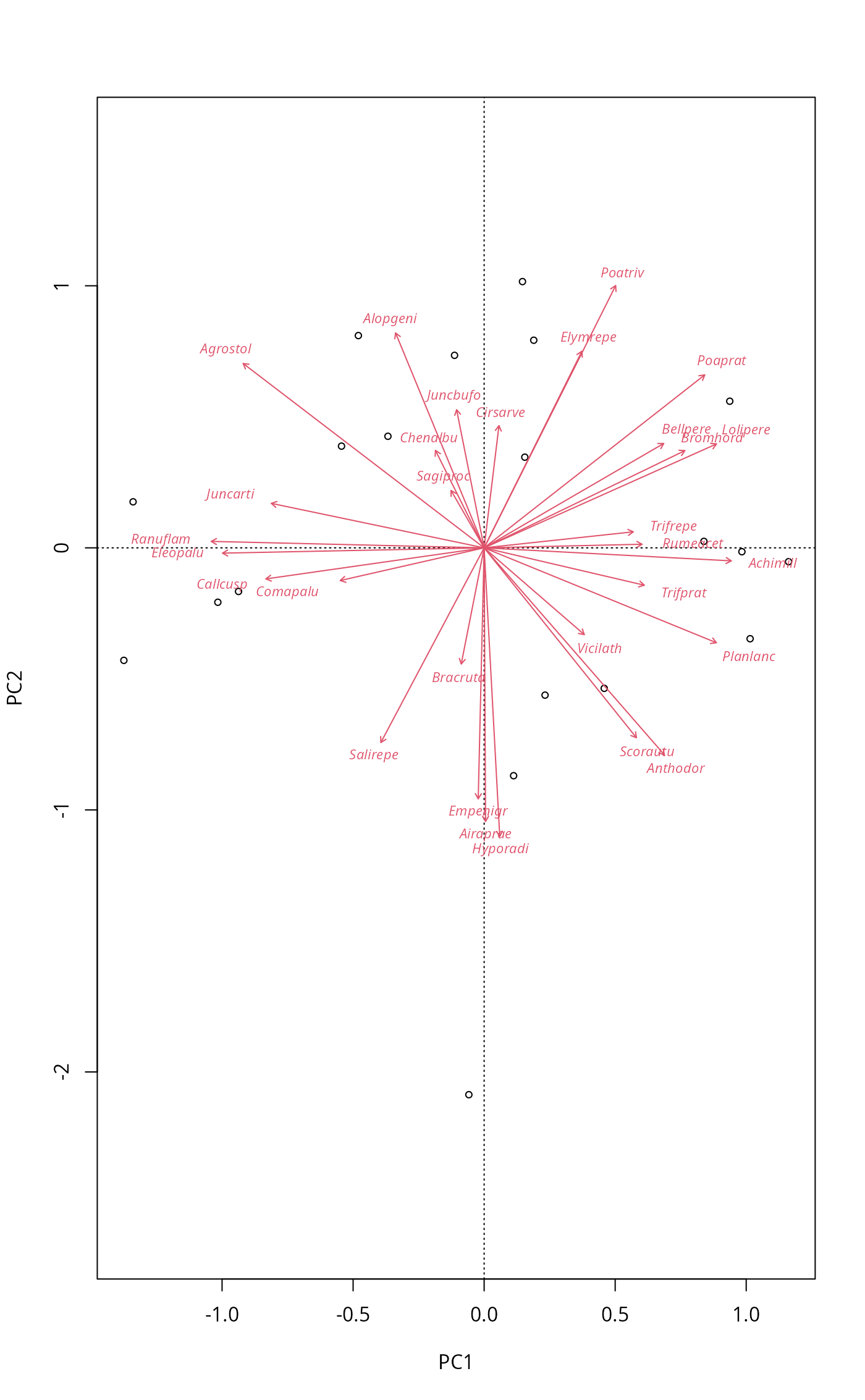 rda. It is common for the "species" scores in a PCA to
