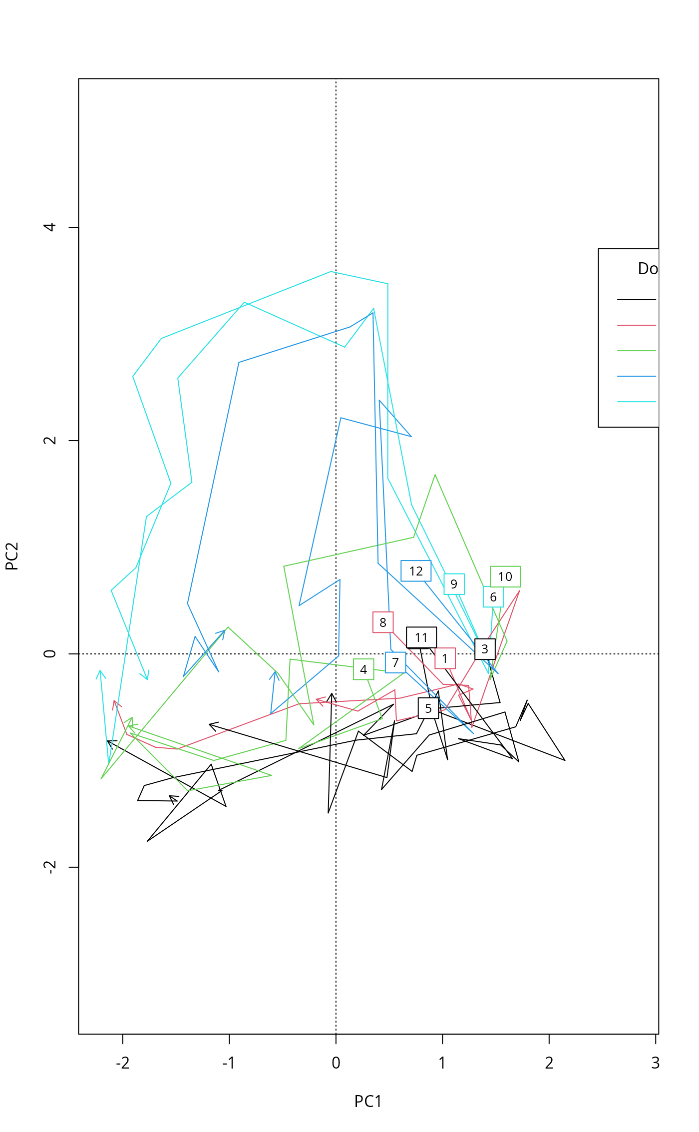 ordiarrows(ord, groups, levels, replicates, order.by, display = "sites",