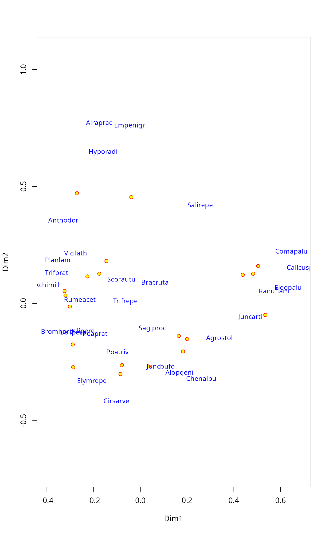 ordiplot methods text and points. Function