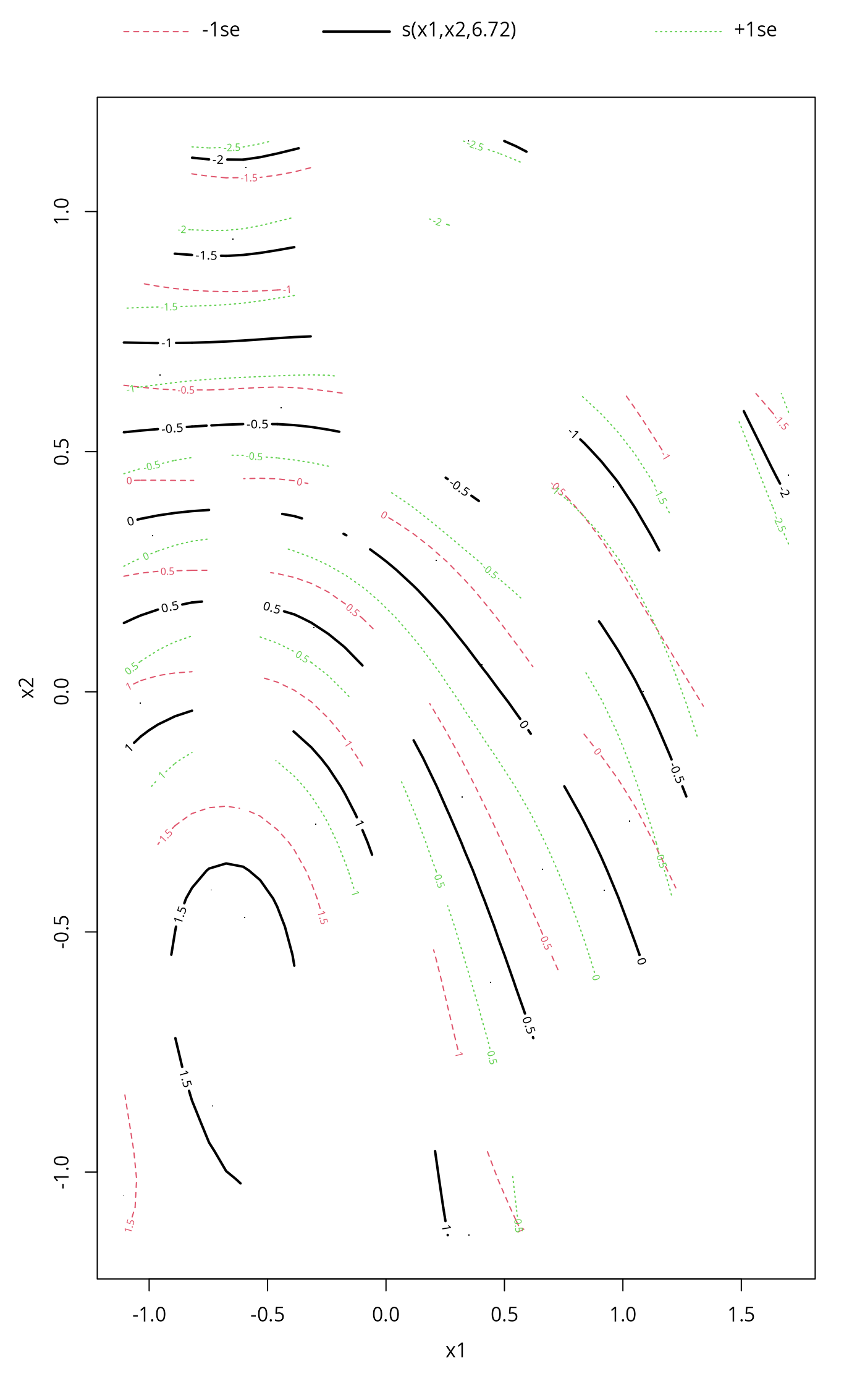 #> y ~ te(x1, x2, k = c(4, 4), bs = c("cr", "cr"), fx = c(FALSE,