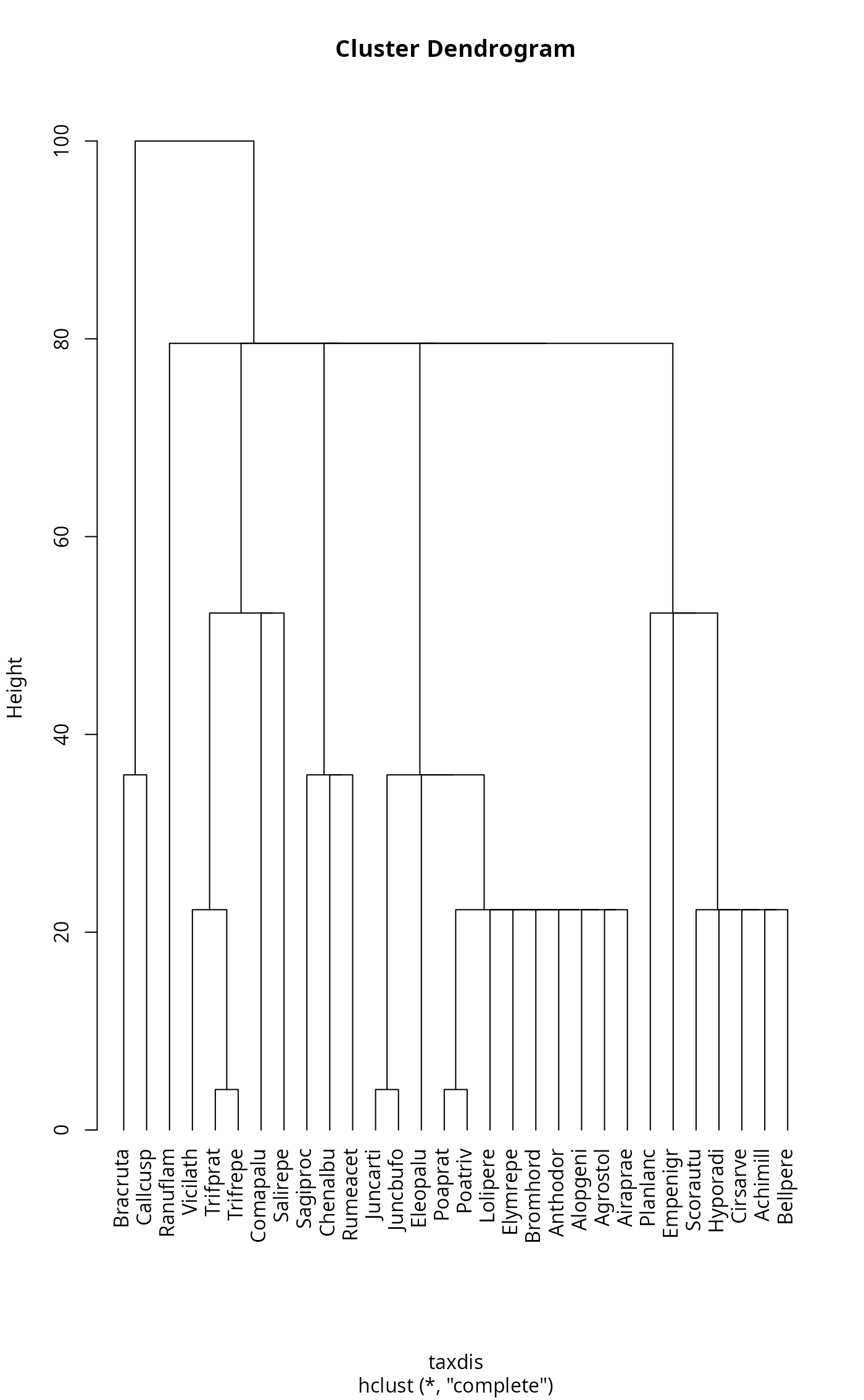 taxdis <- taxa2dist(dune.taxon, varstep=TRUE)