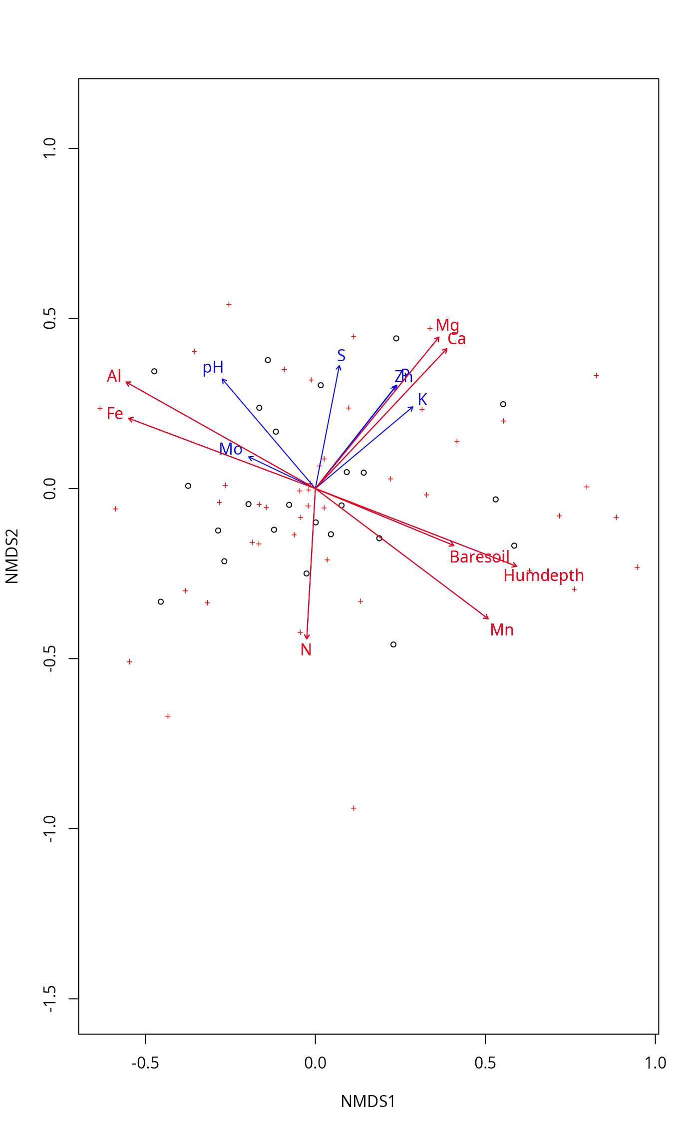 #> NMDS1 NMDS2 r2 Pr(>r)