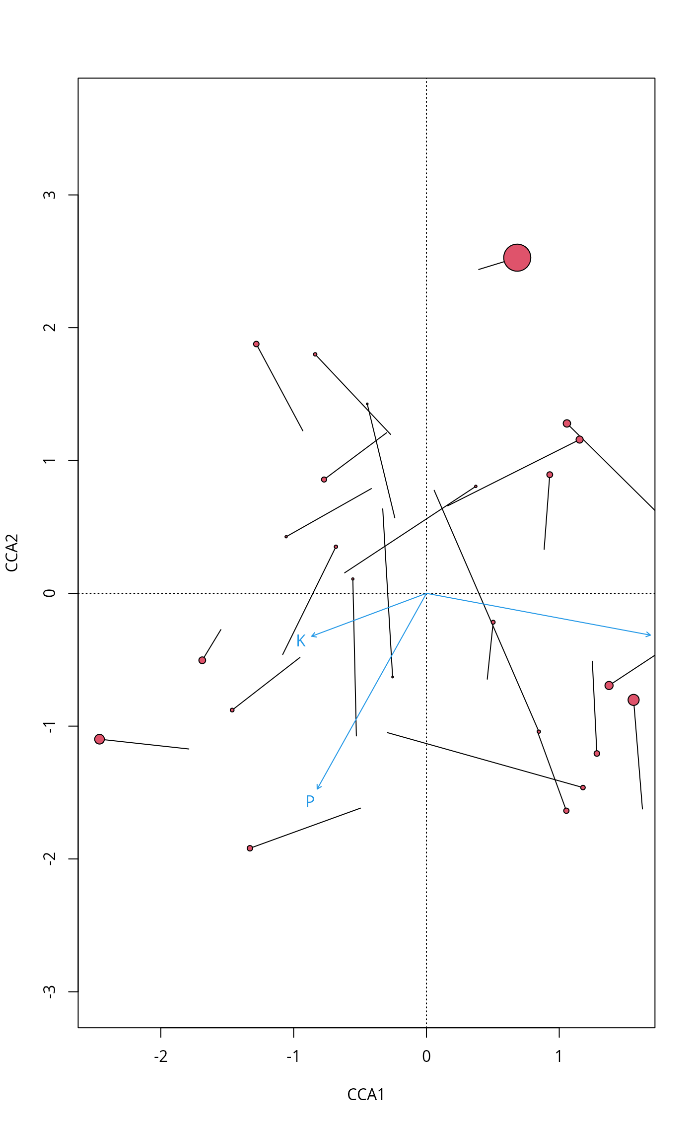 mod <- cca(varespec ~ Al + P + K, varechem)