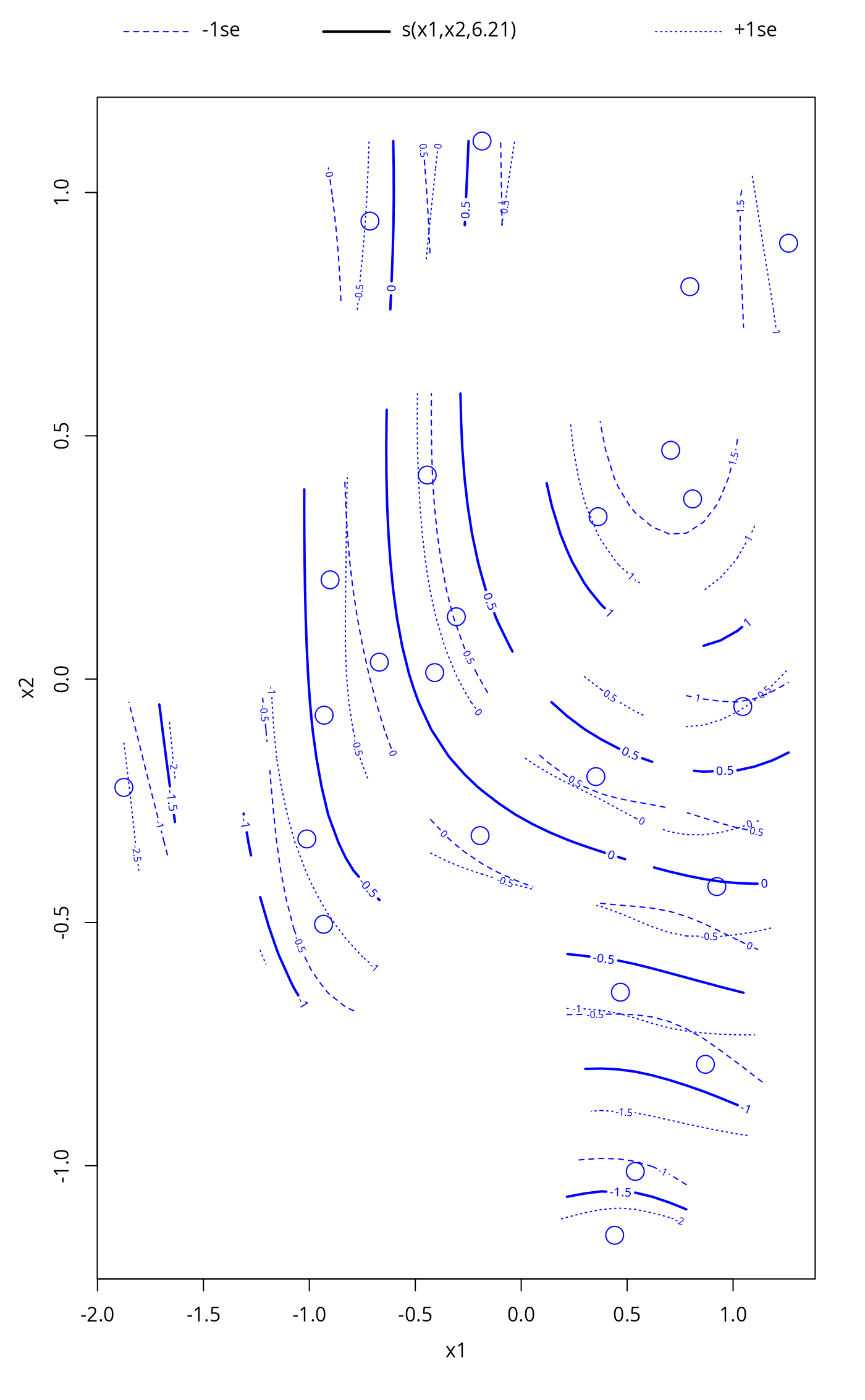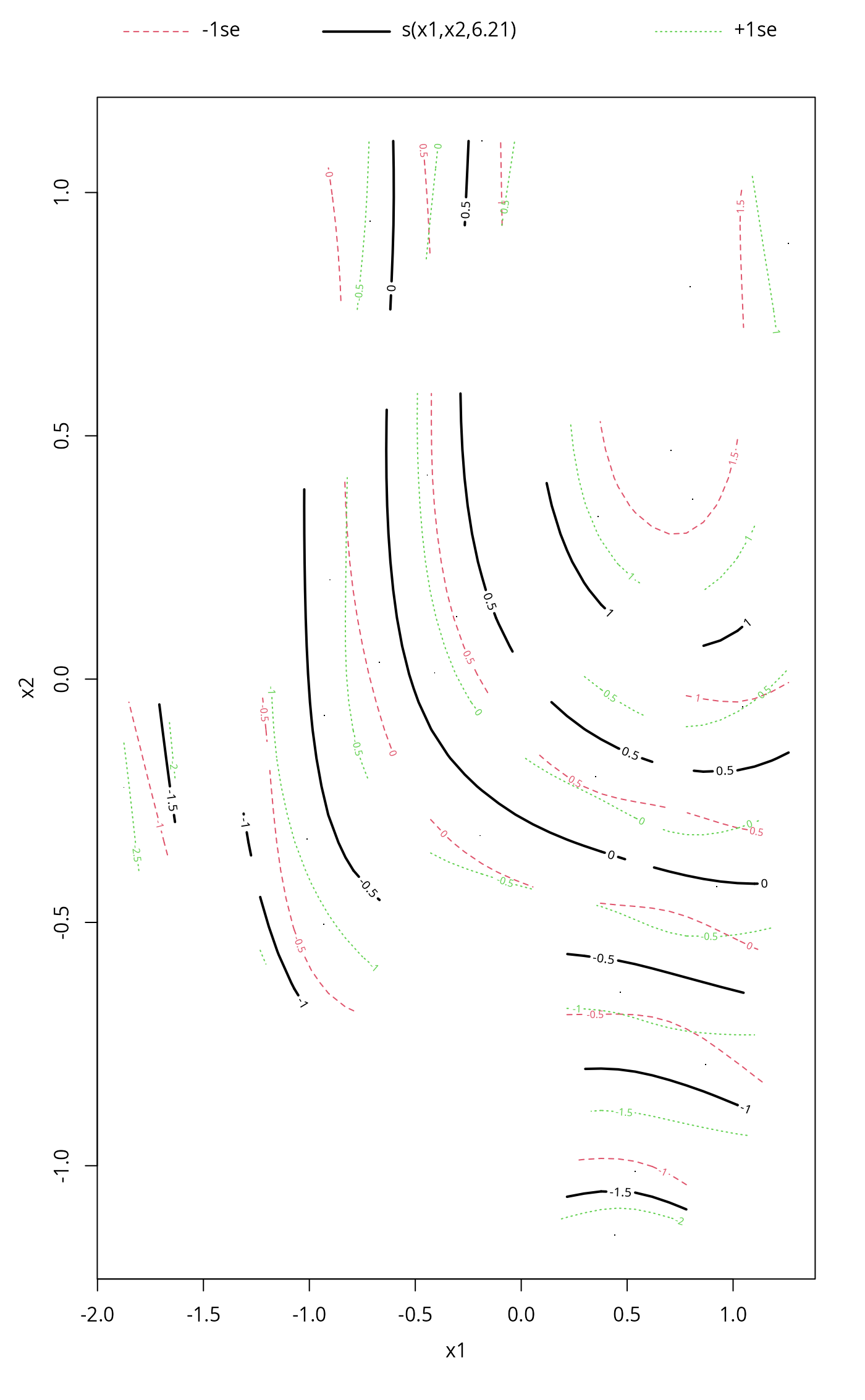 fx = FALSE) or penalised regression splines (fx = TRUE). Can be a vector of length 2 for anisotropic surfaces (isotropic = FALSE). It doesn't make sense to usefx = TRUEandselect = TRUEand it is an error to do so. A warning is issued if you specifyfx = TRUEand forget to useselect = FALSEthough fitting continues usingselect = FALSE.- add