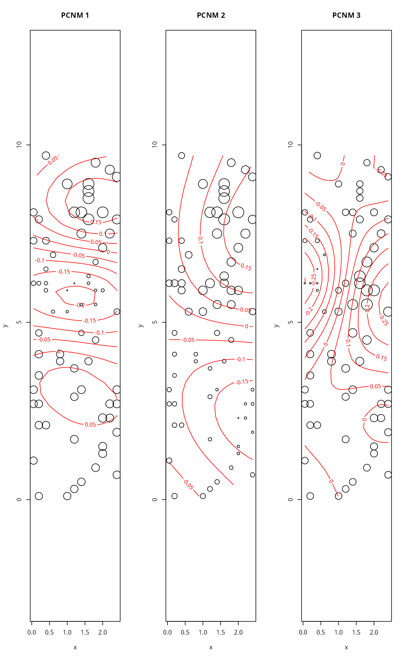 ## Map of PCNMs in the sample plot