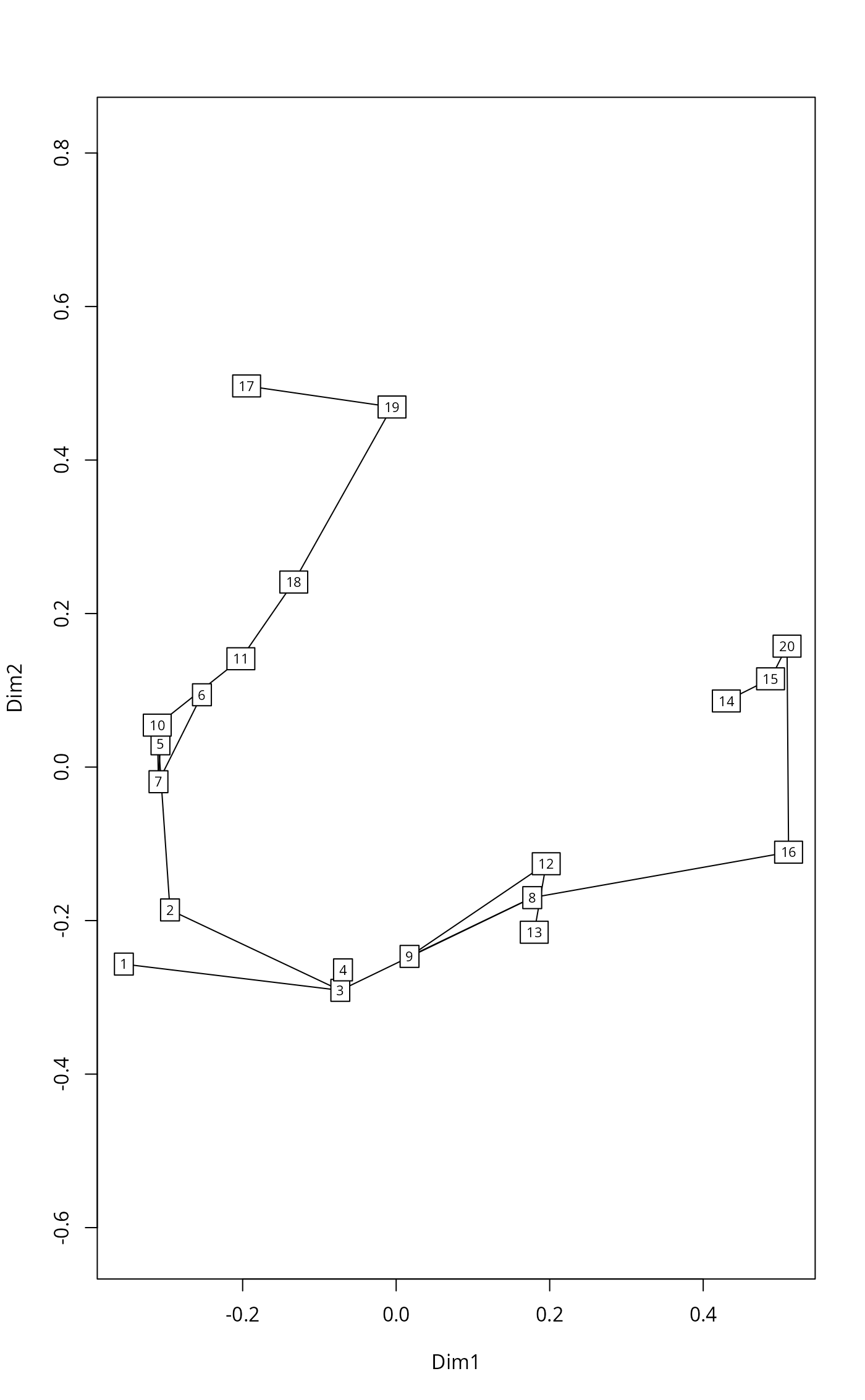 plot(tr, cmdscale(dis), type = "t")