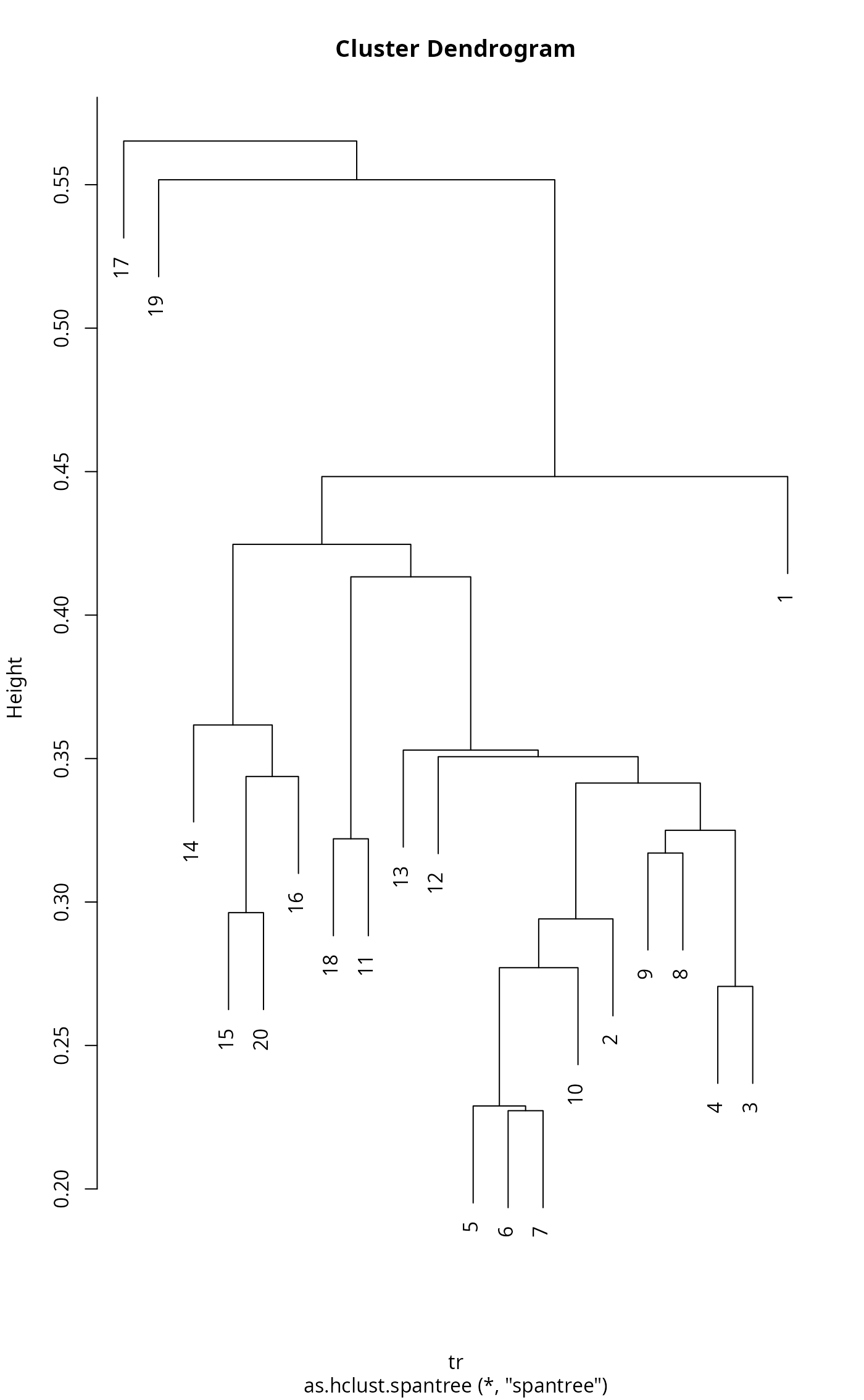 tr <- spantree(dis)