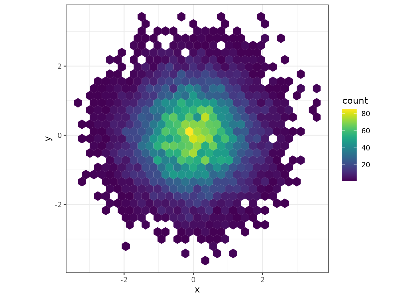ggplot(data.frame(x = rnorm(10000), y = rnorm(10000)), aes(x = x, y = y)) +