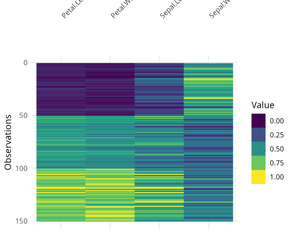 vis_value(iris)data input can only contain numeric values, please subset the data to the numeric values you would like. dplyr::select_if(data, is.numeric) can be helpful here!