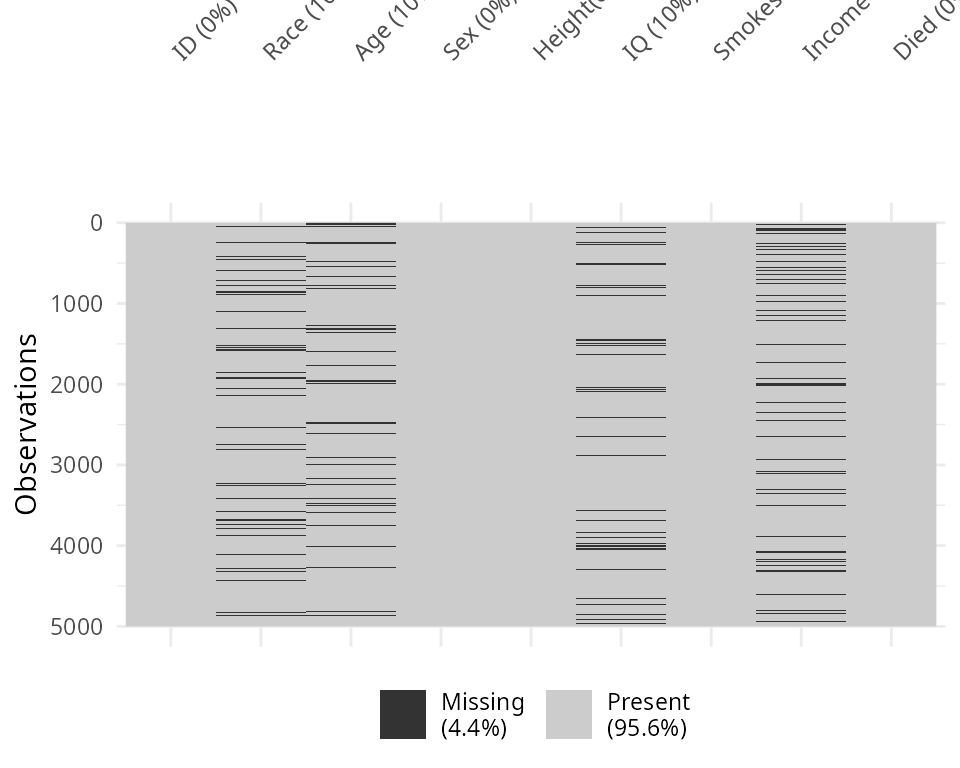 Notice that the percentages of missingness are provided in the data.