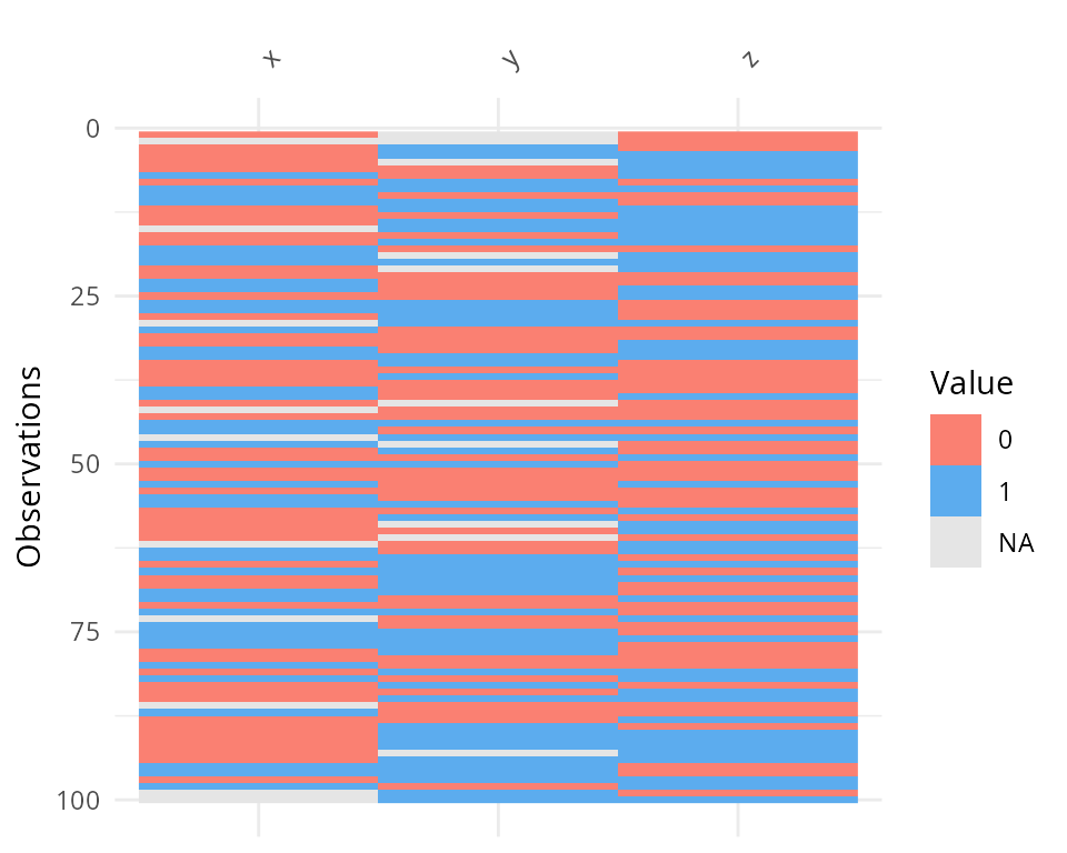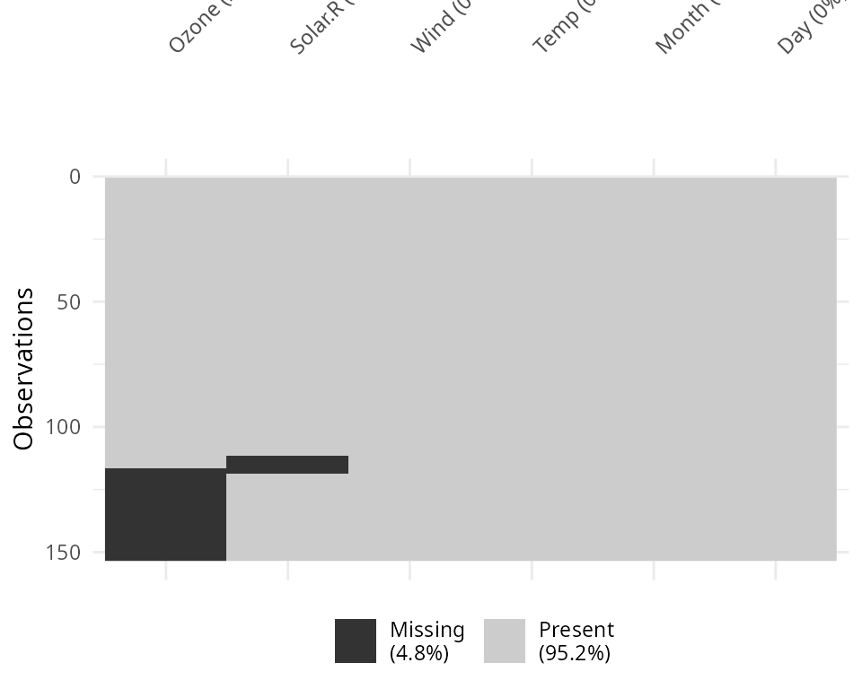 Columns can be arranged by columns with most missingness, by setting