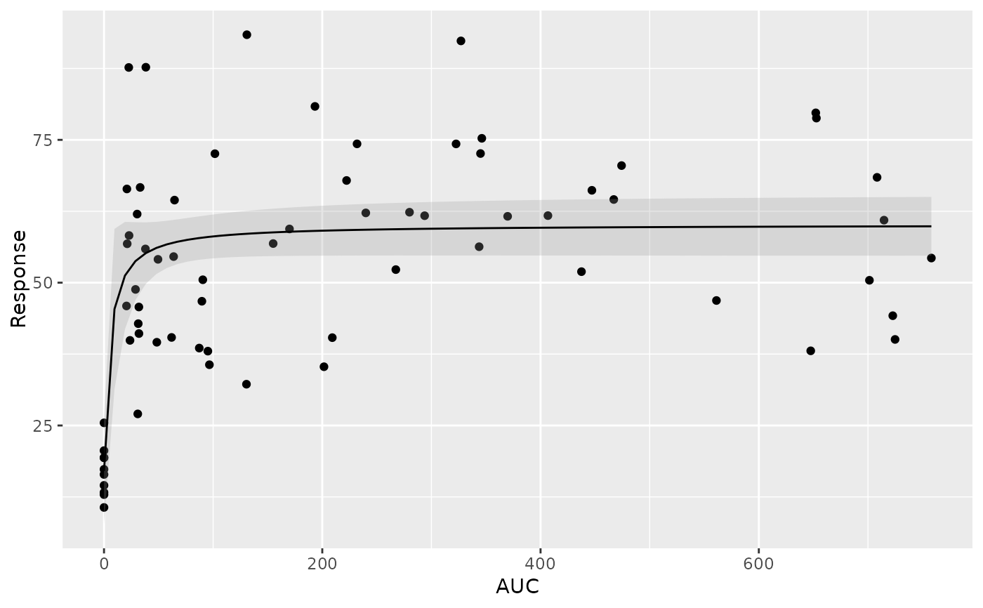 mod <- stats::nls(formula = Response ~ E0 + Emax * AUC / (EC50 + AUC),