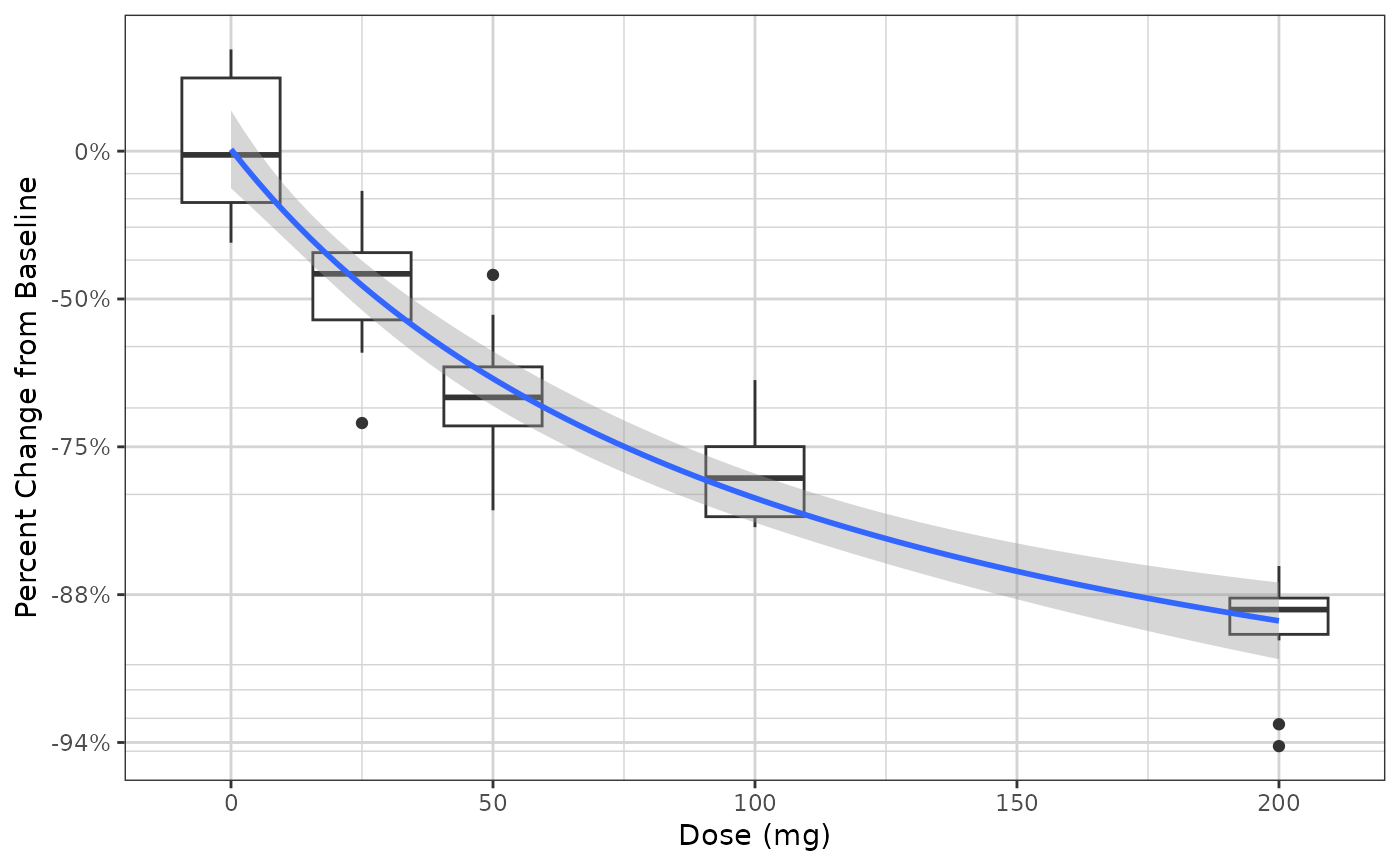 ggplot2::aes(x = DOSE, y = PCHG)) +