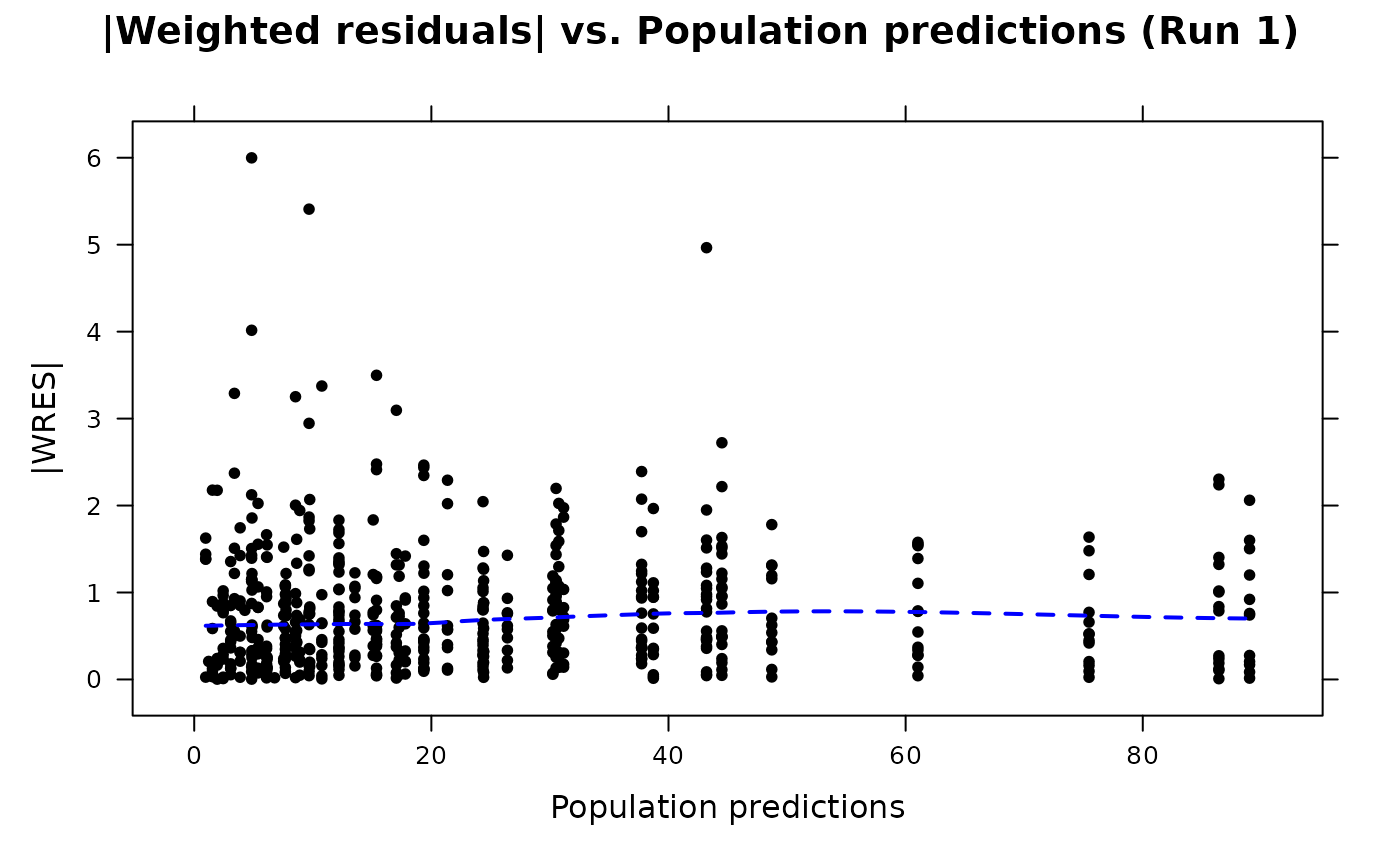 absval.wres.vs.pred.RdThis is a plot of absolute population weighted residuals (|WRES|) vs