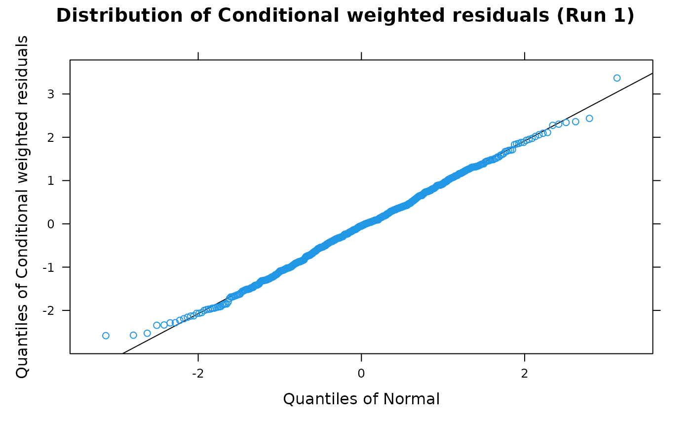 Displays a QQ plot of the conditional weighted residuals (CWRES).