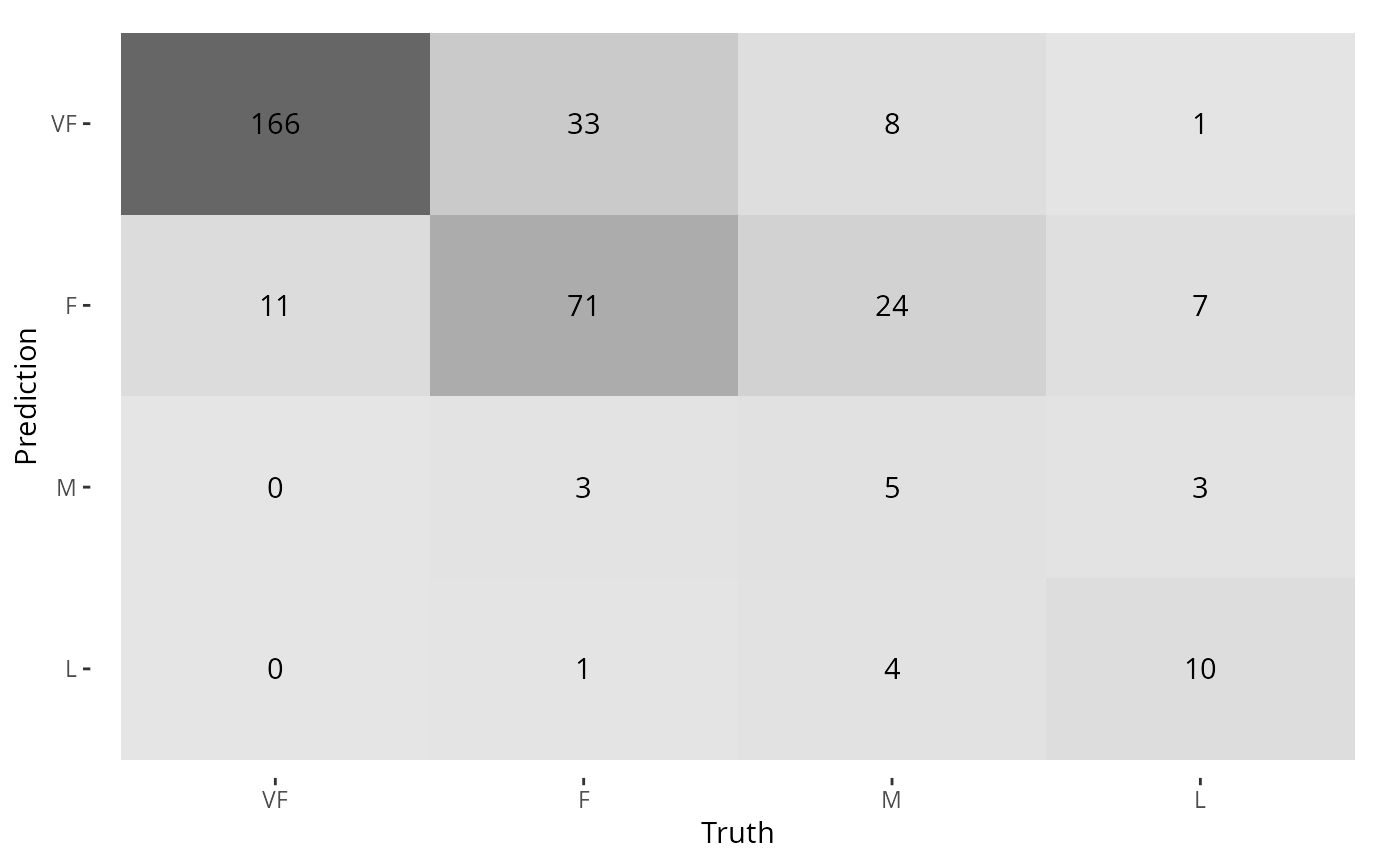 mean_cmat <- matrix(counts_per_resample$prop, byrow = TRUE, ncol = 4)