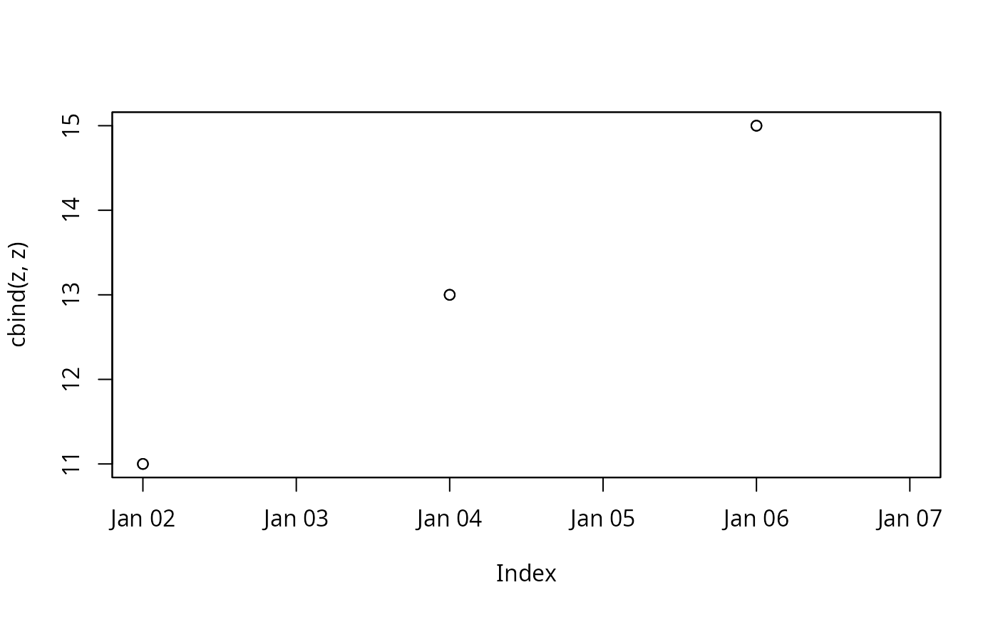 z <- zoo(c(2, NA, 1, 4, 5, 2), c(1, 3, 4, 6, 7, 8))